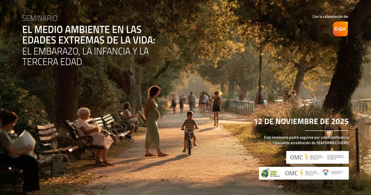 El seminario “El medio ambiente en las edades extremas de la vida: el embarazo, la infancia y la tercera edad” se celebró el pasado 12 de noviembre a las 17.00 h., dentro de la Alianza Médica contra el Cambio Climático (AMCC). En la apertura, el Dr. José Luis Jiménez Martínez recordó que “de forma muy relacionada con el calentamiento global y el cambio climático está la contaminación por la presencia de partículas finas, tóxicas y gases tóxicos en el aire”, especialmente dañina en las etapas más vulnerables.